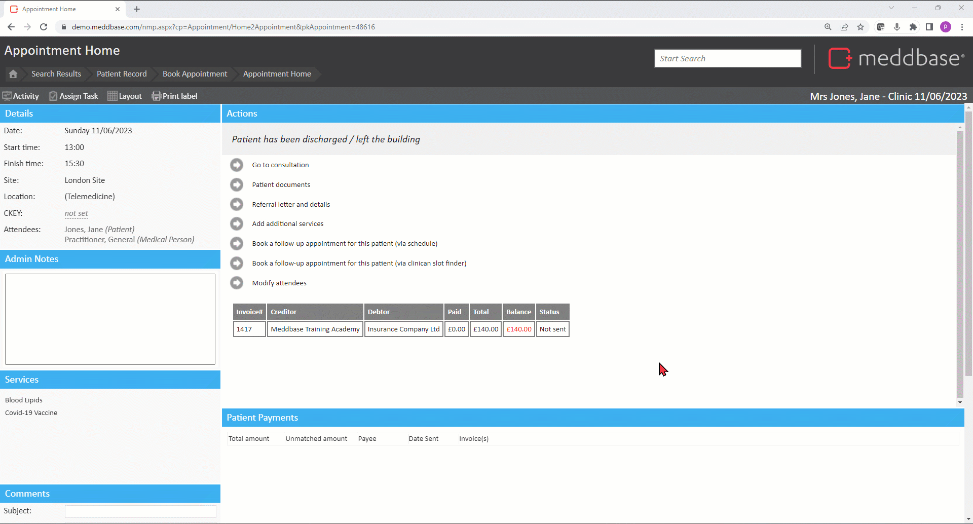 Click Xero Interface - What can you do with Xero? for a full list of the actions you can take on an invoice in Meddbase.