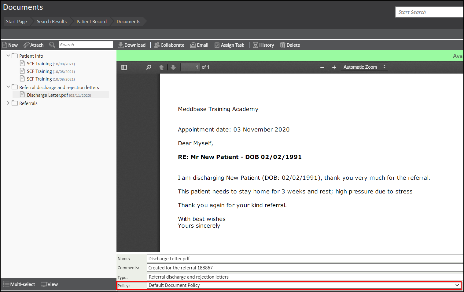 *A Medical Certificate can be assigned to an Appointment Type, under Admin > Appointment Admin > Security > Medical Policy Applied, although this is not mandatory.
