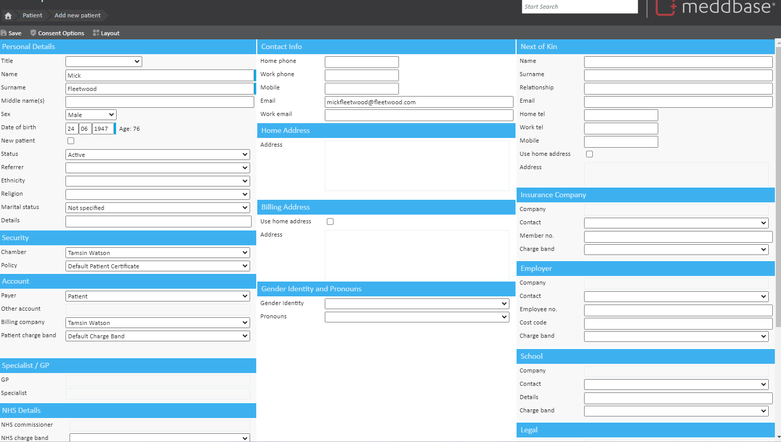 * This functionality is also available when updating records if a patient, clinician, non-medical staff or company changes their address.