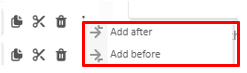 4. Continue to add controls using Add after or Add beforeIf inserting a control inside of a group, table or panel, Add inside will also appear.