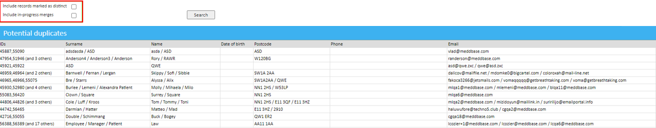 By default any patients that have been declared as distinct (not a duplicate) or are currently in progress of being merged will not appear in the list of results, but there are filter options that can be enabled to include these records in the view.