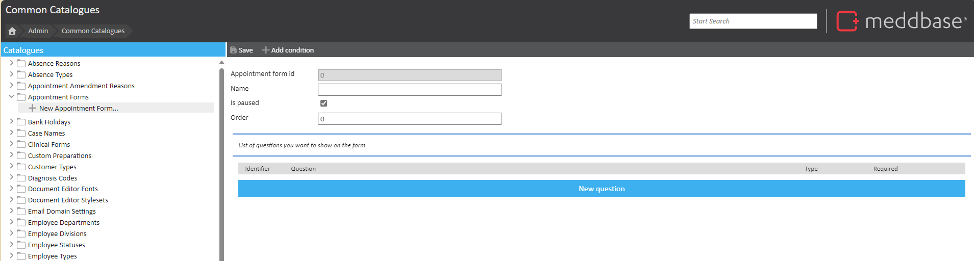 All Appointment forms are located within Admin > Common Catalogues > Appointment Forms.