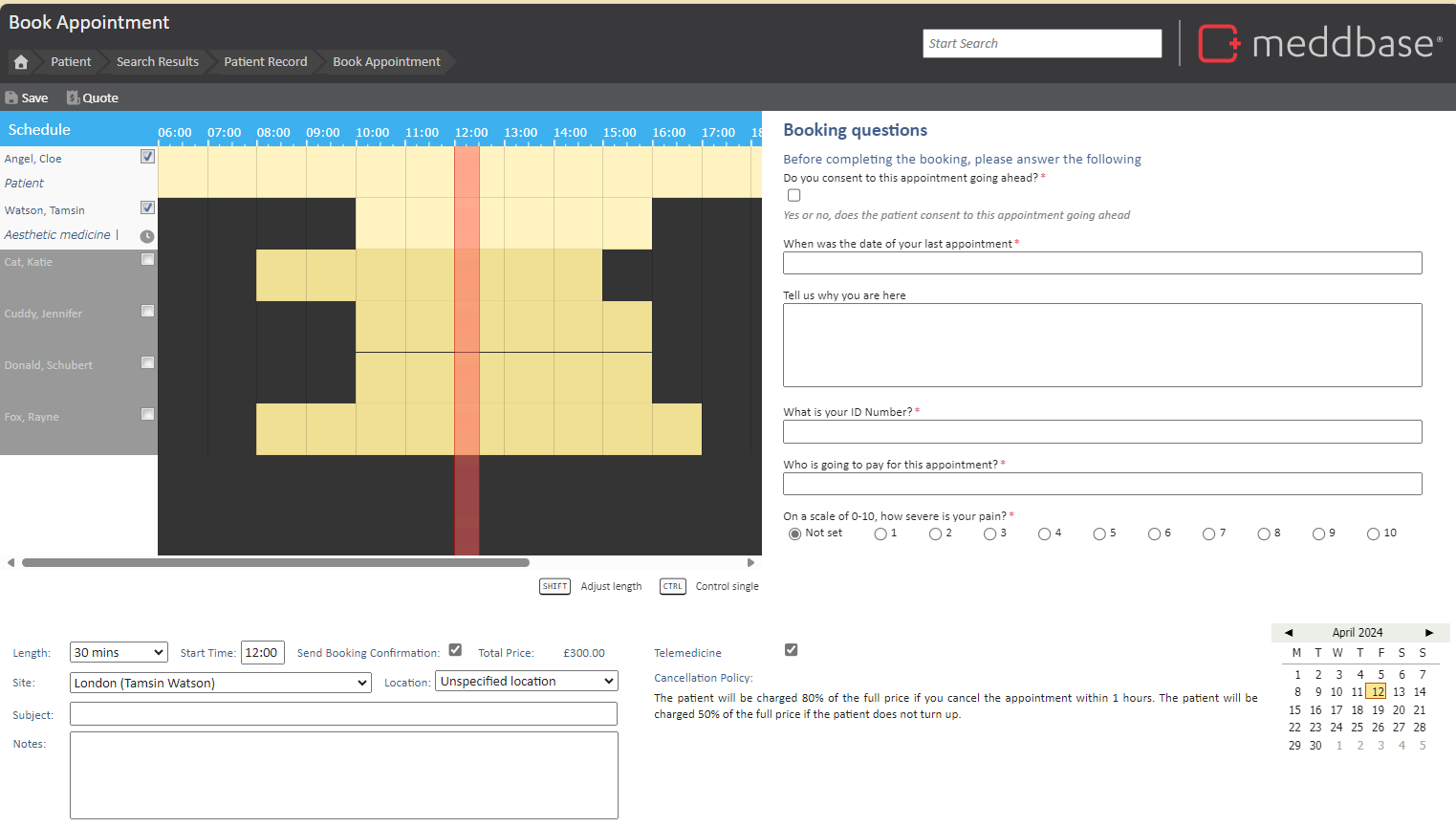 It is now possible to create forms that contain questions that must be answered at the time of booking an appointment. This provides you with an opportunity to make sure the information required for an appointment is captured during the booking process.