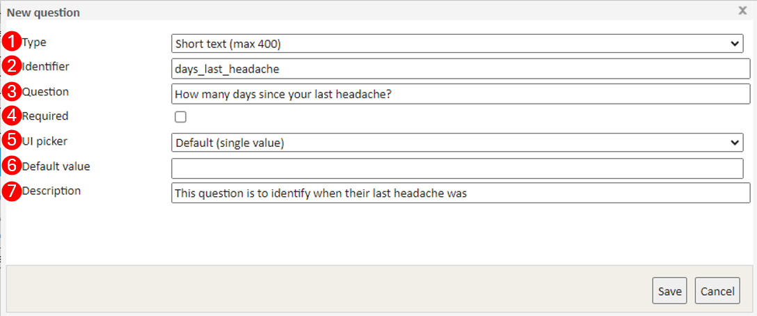 UI picker - By default, this always picks Default (single value) where the end user will provide a typed answer. There are 2 other UI settings you can pick from, in which the end user will select a pre-defined answer.