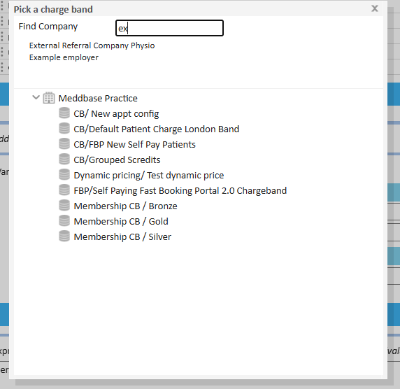 v. On default chargeband: The default chargeband the patient is on. You may need to search for a company to select the relevant chargeband.