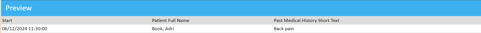 By applying this filter, the report retrieves only the data from the Fields table where the Concept ID matches 307294006. This ensures that the report displays data exclusively for the "Past Medical History" Clinical Form Field.