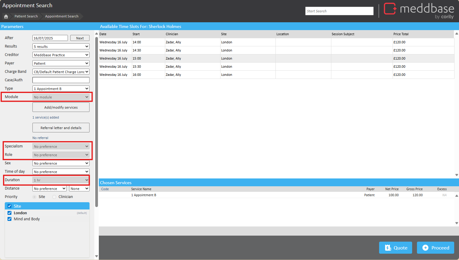 - The specialism and role of the attendee are already defined by the appointment setup.