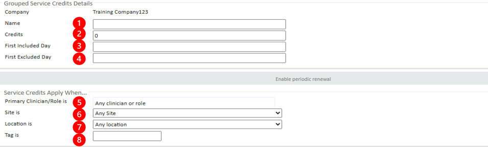 1. Name - Set the name of the Grouped Service Credit rule. If this is left empty, the default name will be "Grouped Service Credit rule".