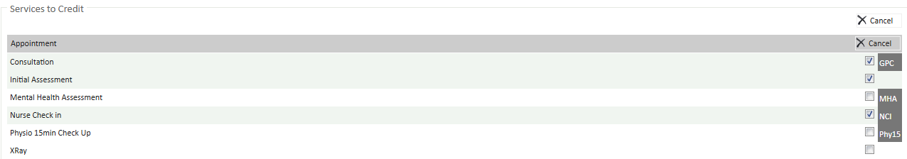 Services to Credit is where you set Appointments and Services you wish to be included in this group. To select the Appointments and Services.