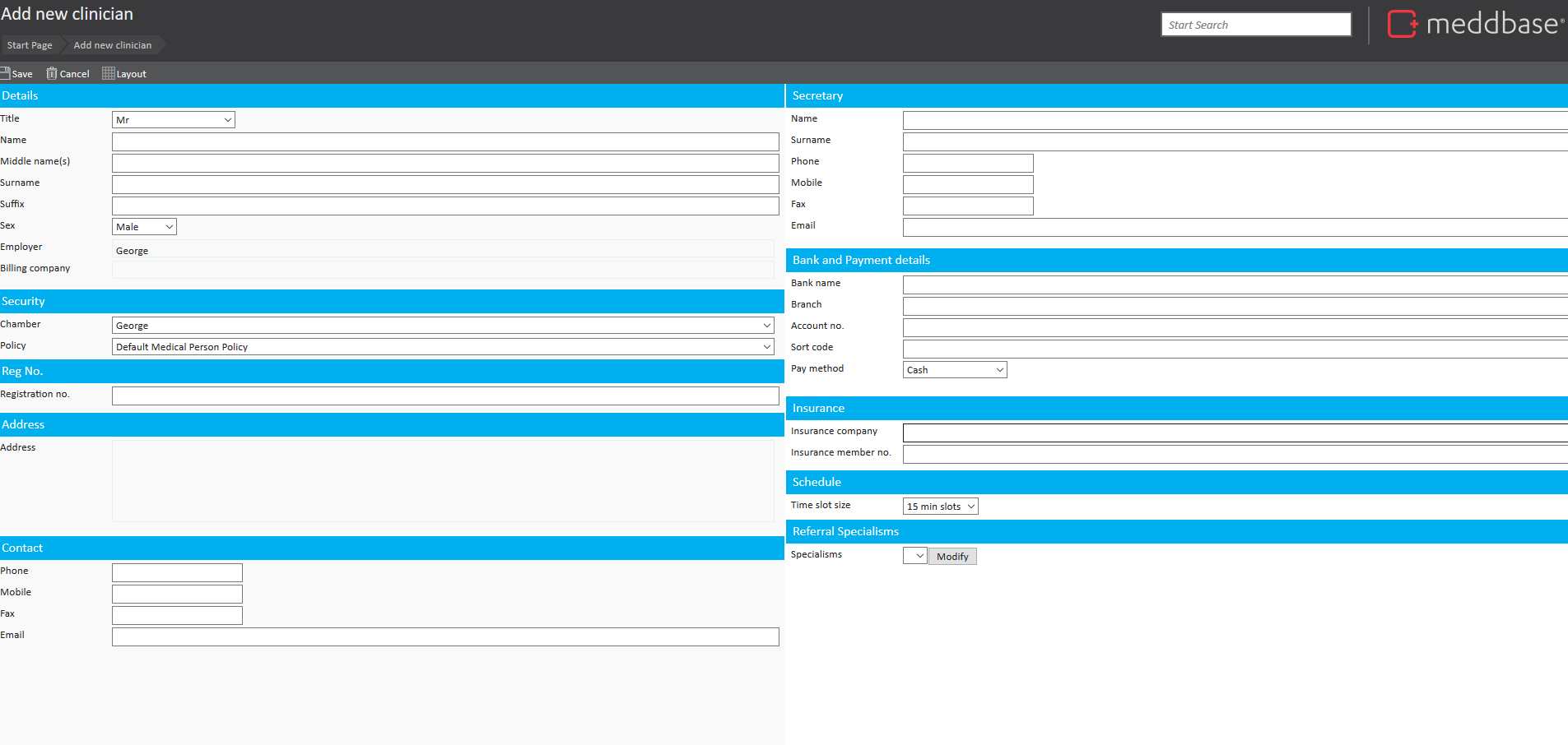 • Referral Specialism (For use with the Meddbase referral network)