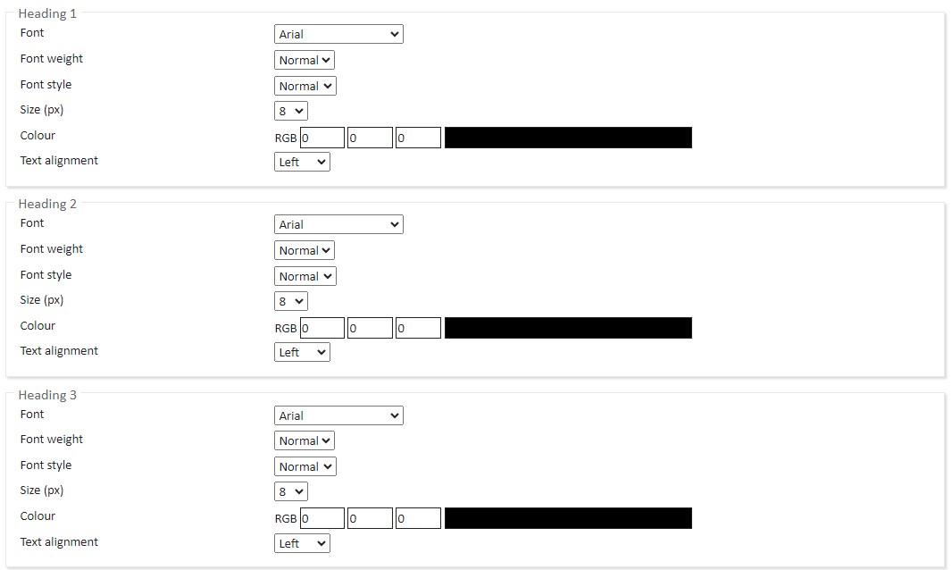 On your right-hand side, you will now see the following options which can be defined and a style set: