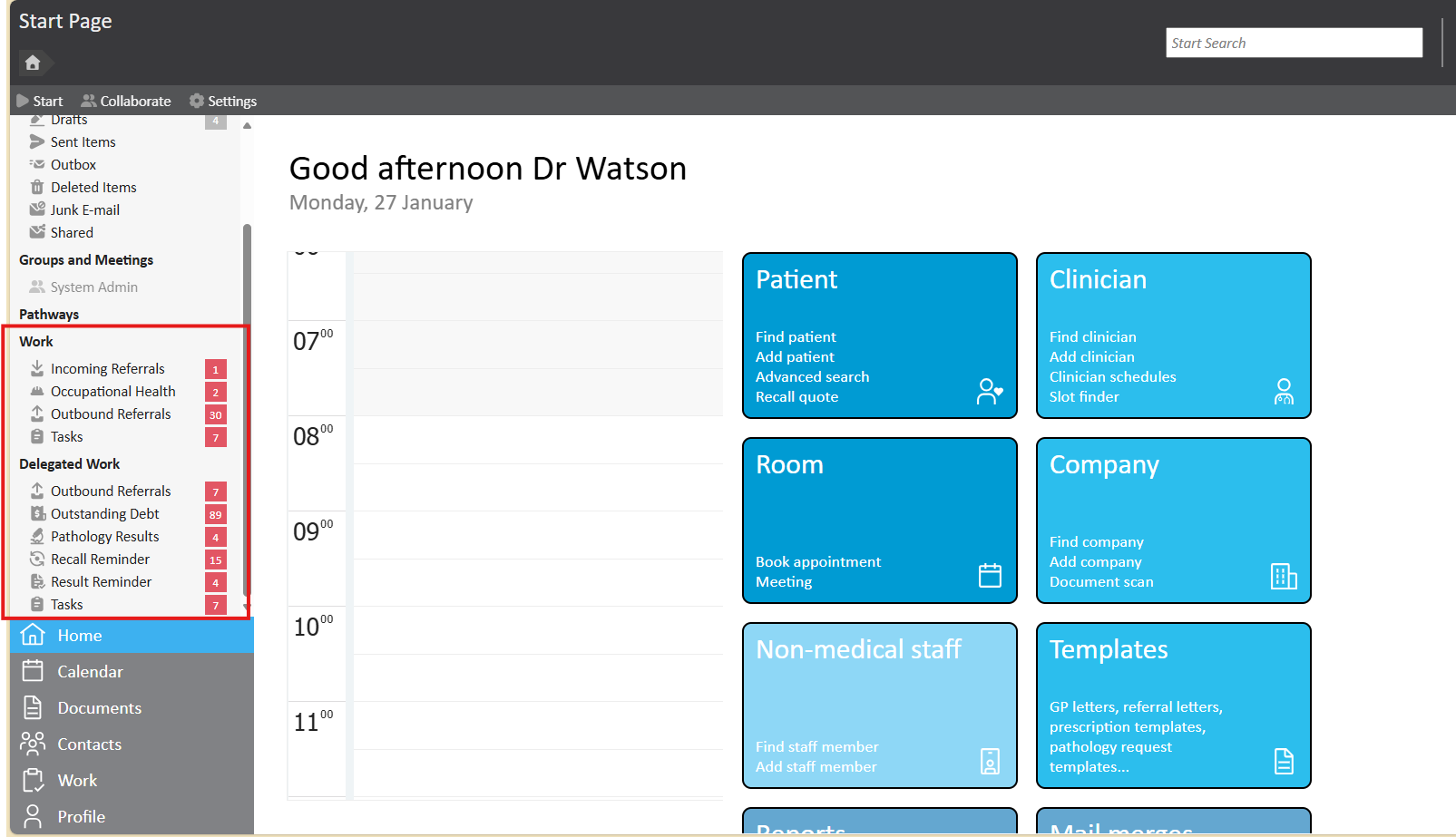 Each of these work types will have a corresponding inbox available on the left hand side of the Start page, where they will be split into Work or Delegated work.