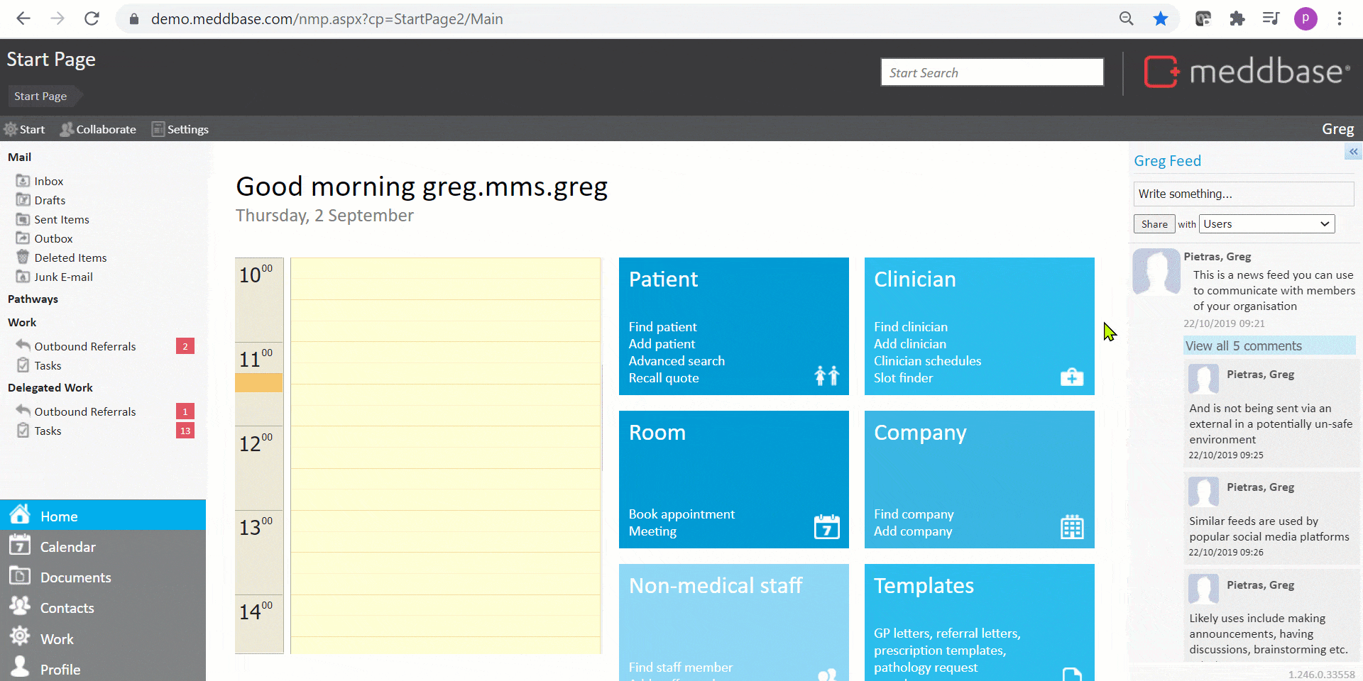 Members of this group will receive an Outbound Referral work item in their Work section of the Start Page when an Occupational Health referral is made from Meddbase, either internally to Triage or to another Meddbase chamber.