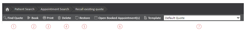 1. Find Quote – Allows you to search for other quotes by using the Quote reference code.