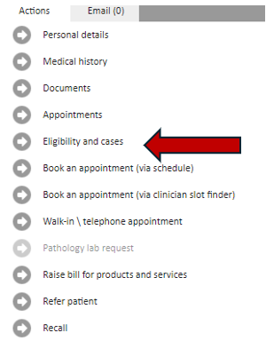 1. Navigate to the relevant patient record and click on 'Eligibility and cases'.