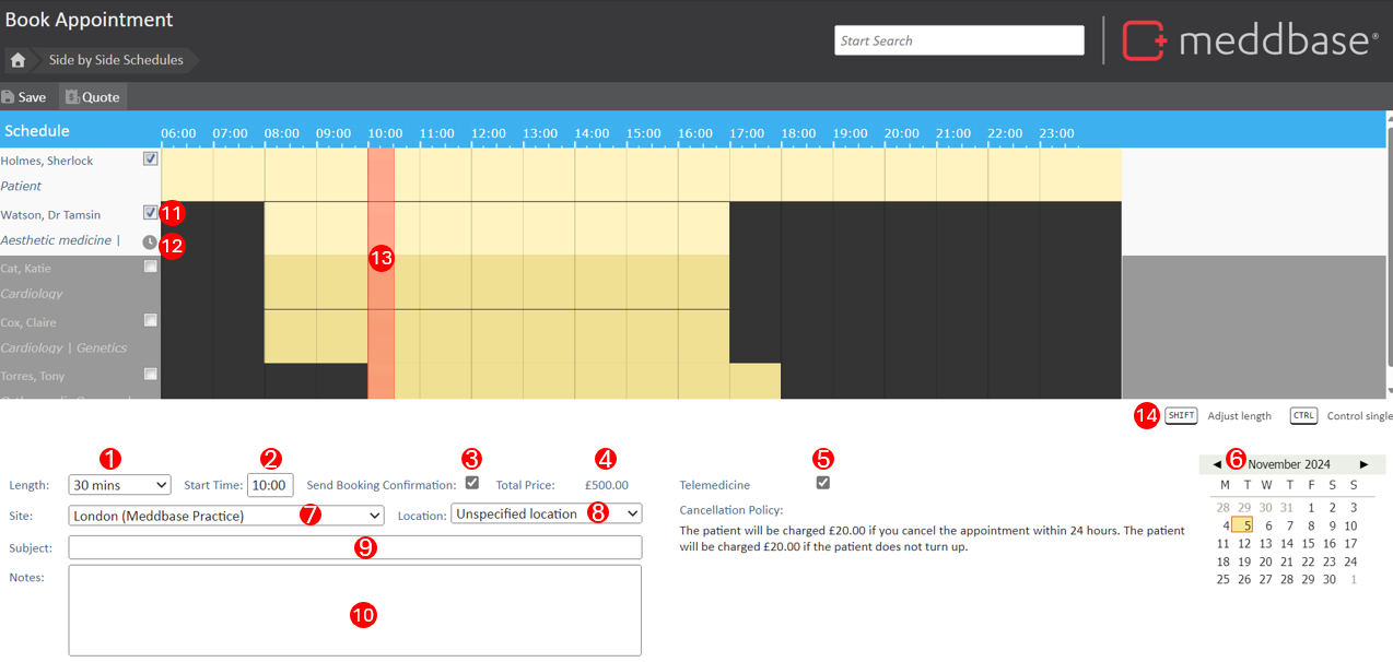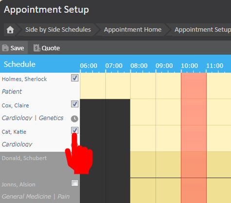 - Red Drag bar: Click and drag the red bar to change the appointment time.