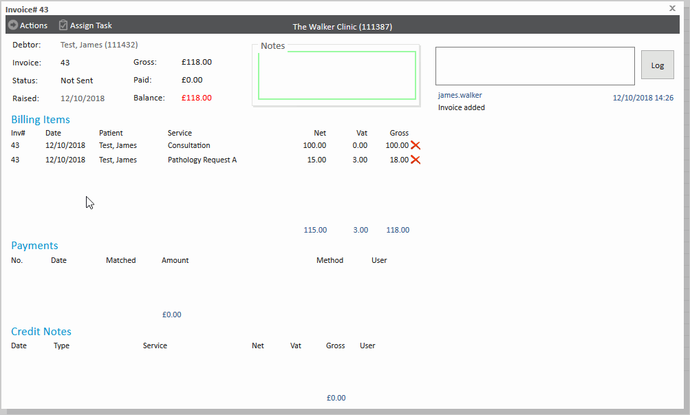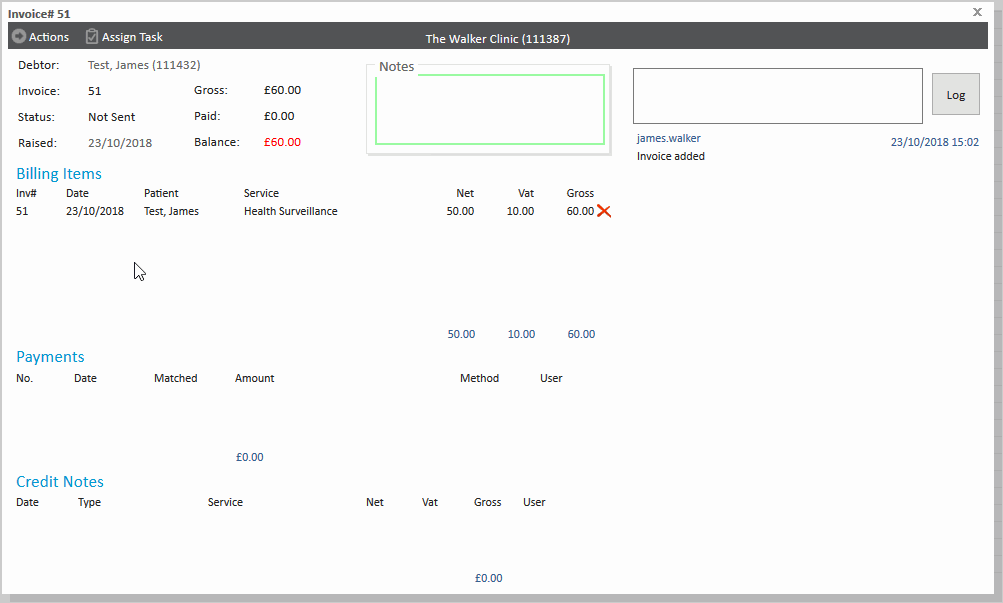 Meddbase allows for users to move billing items from one invoice to another, either the same debtor or to a different debtor. This can be done by adding the item to an existing invoice, or generating a new invoice,