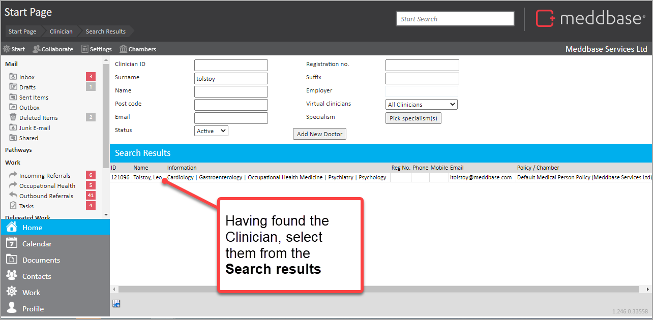 3. Open the Clinician record