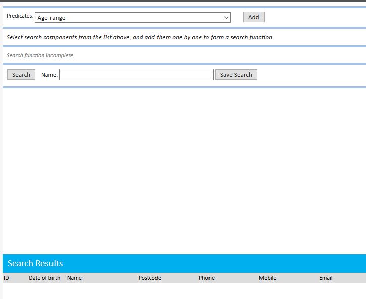 Predicates: This is a drop-down list of all of the options you search under. When you have selected the initial or the only predicate you wish to search on the 'Add' button needs to be selected.