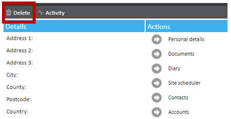 Once you have navigated to the clinician page, at the top left, underneath the breadcrumb trail, you will find the 'Delete' button.