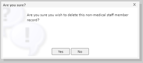 Once you have clicked on the 'Delete' button the following pop up will appear asking you to confirm you wish to delete the staff member: