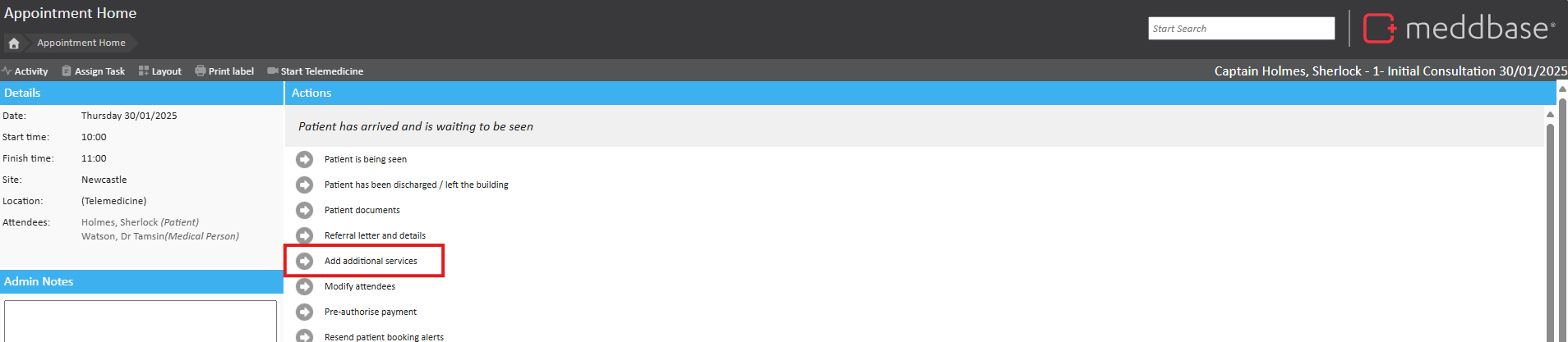 - After the patient has arrived – Click ‘Add Additional Services’ to include new services during the appointment.