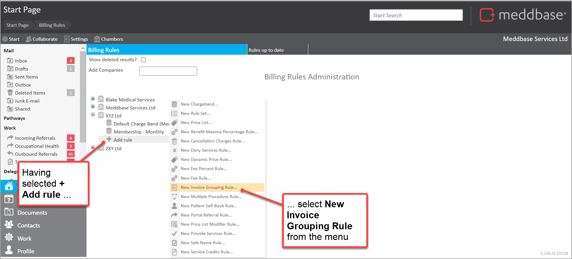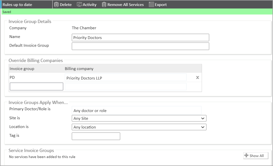 To make sure that the invoice for that appointment is raised by Priority Doctors LLP, we set up an invoice grouping rule that works as follows: