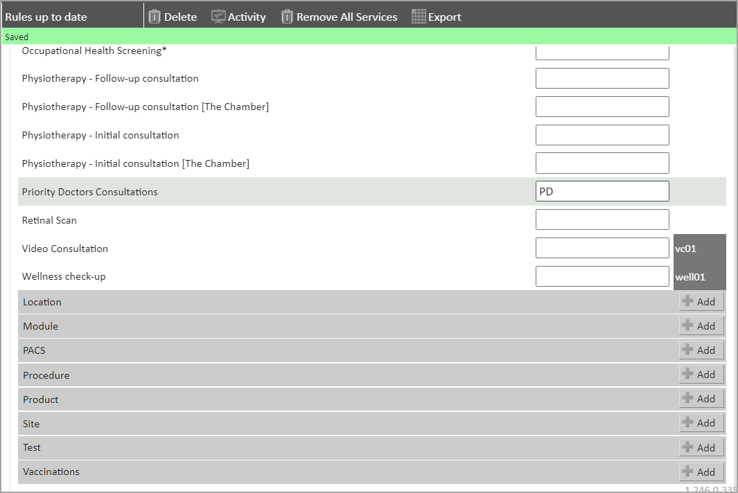 | Services Invoice Groups | The groups to which specific services are applied |