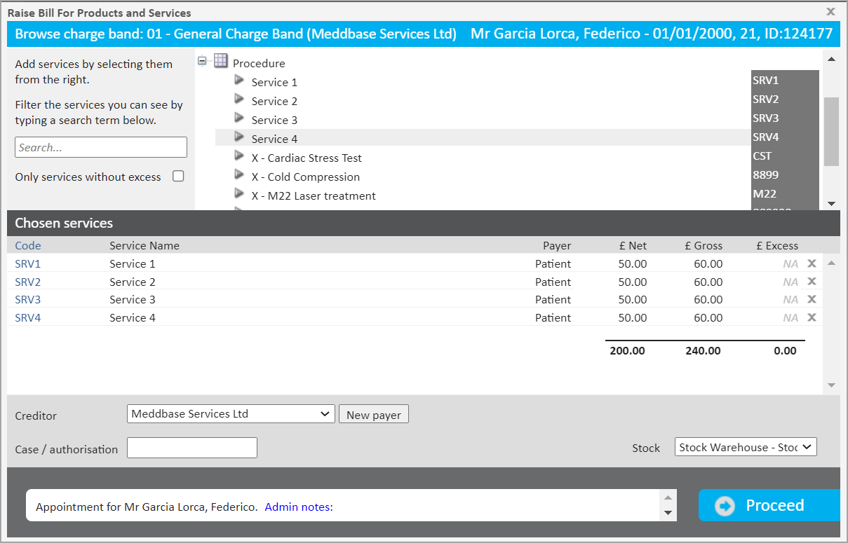 In this example, we have four services in our clinic and we want to group them into two Invoice Groups, A & B:
