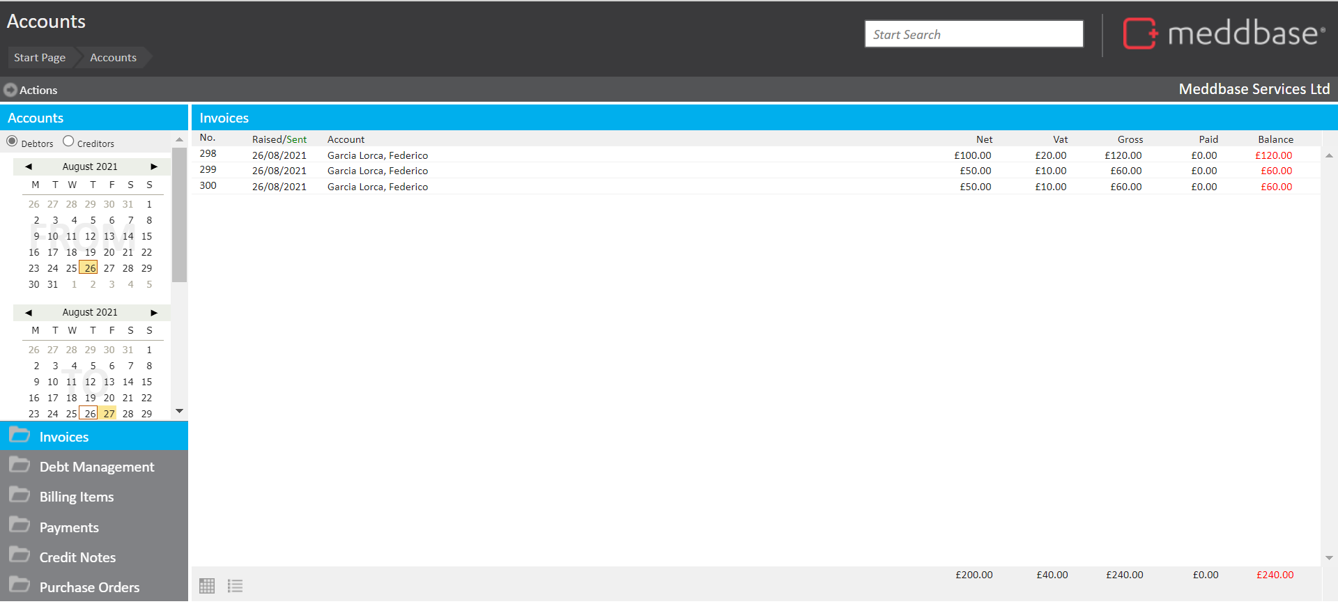 In the example below, we have a company called Priority Doctors LLP that acts as the creditor for an appointment type called Priority Doctors Consultations.