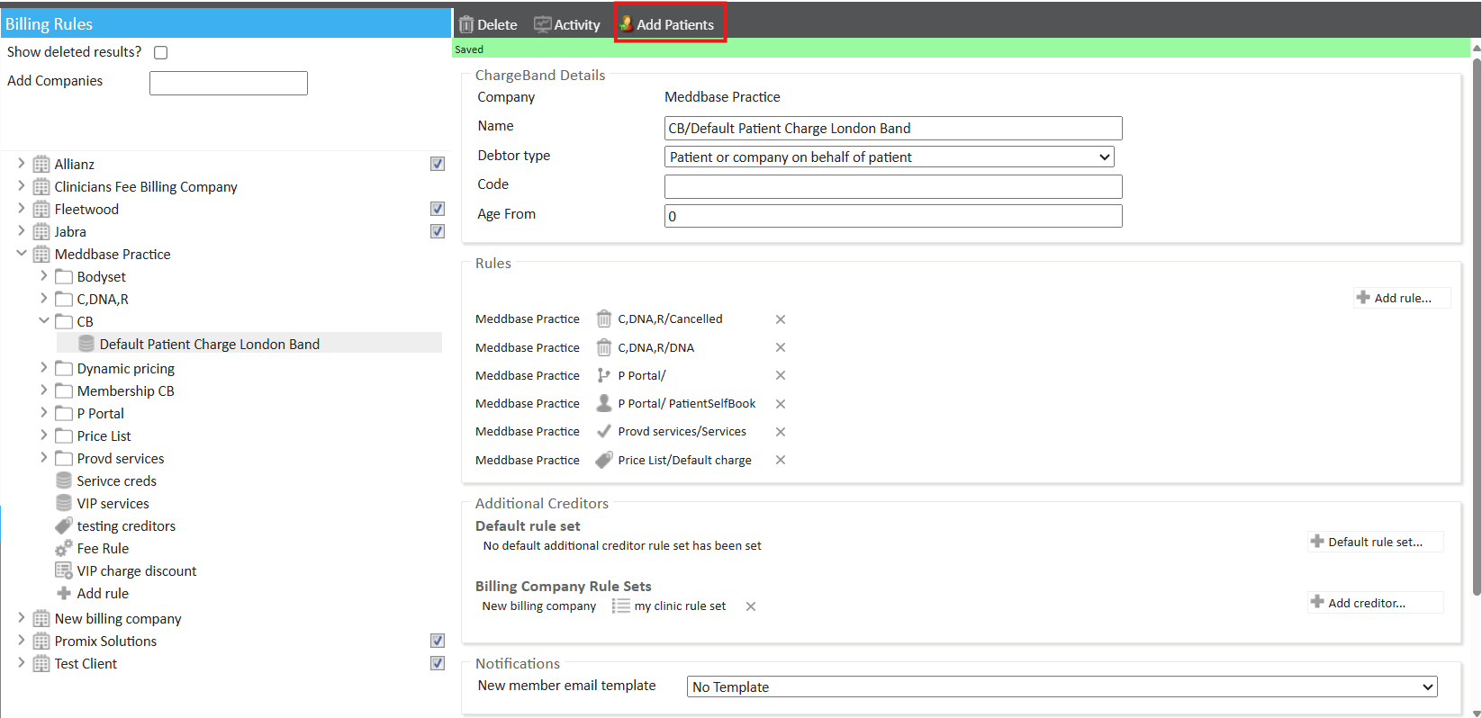 Please note, patients can only be moved between charge bands if both charge bands belong to the same company.