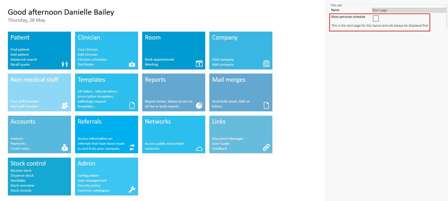 Meddbase has a customisable Start Page. This allows for clients and users to set their layout depending on business needs.