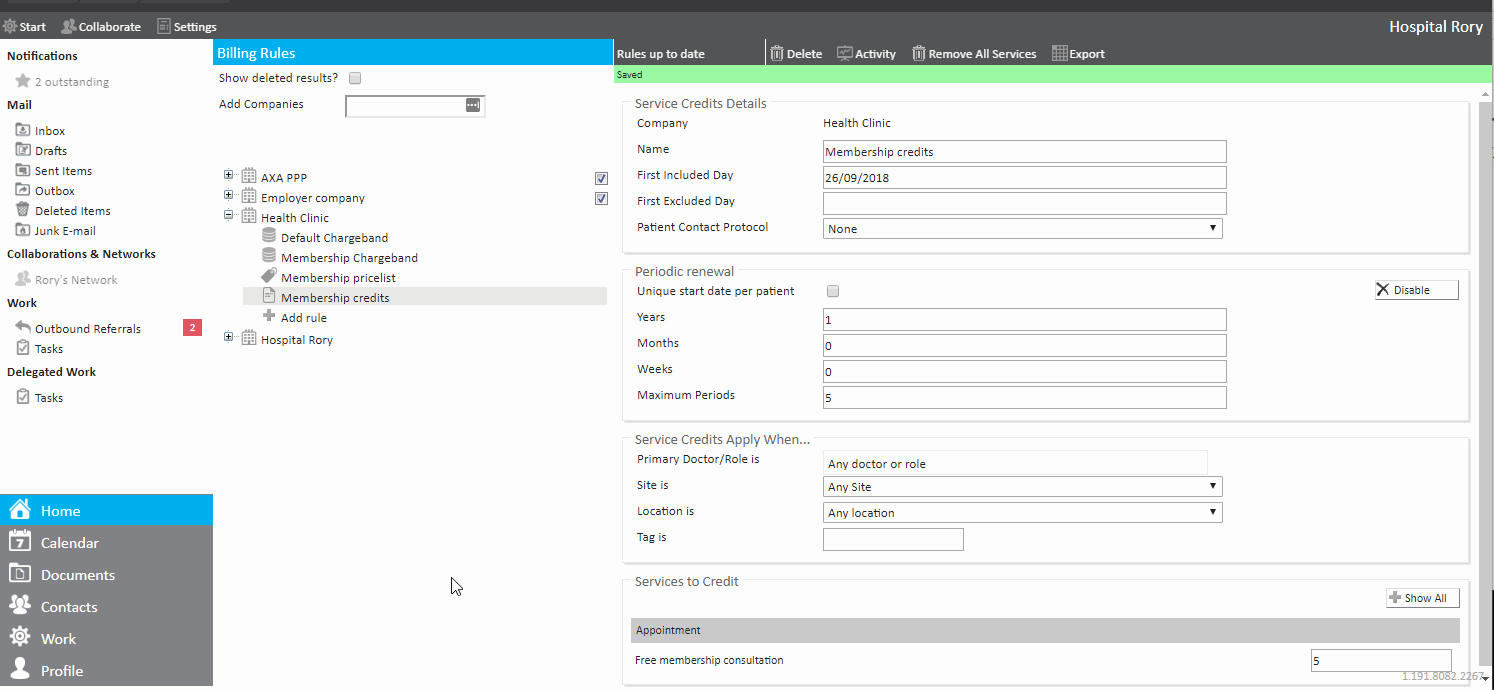 | Primary Doctor / Role is | Enables the restriction of the Service Credit rule to a specific doctor. By default, this is unrestricted to Any doctor or role. |