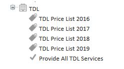 - These price lists and provide service rules need to be added to all active charge-bands every year, replacing the old TDL price list.