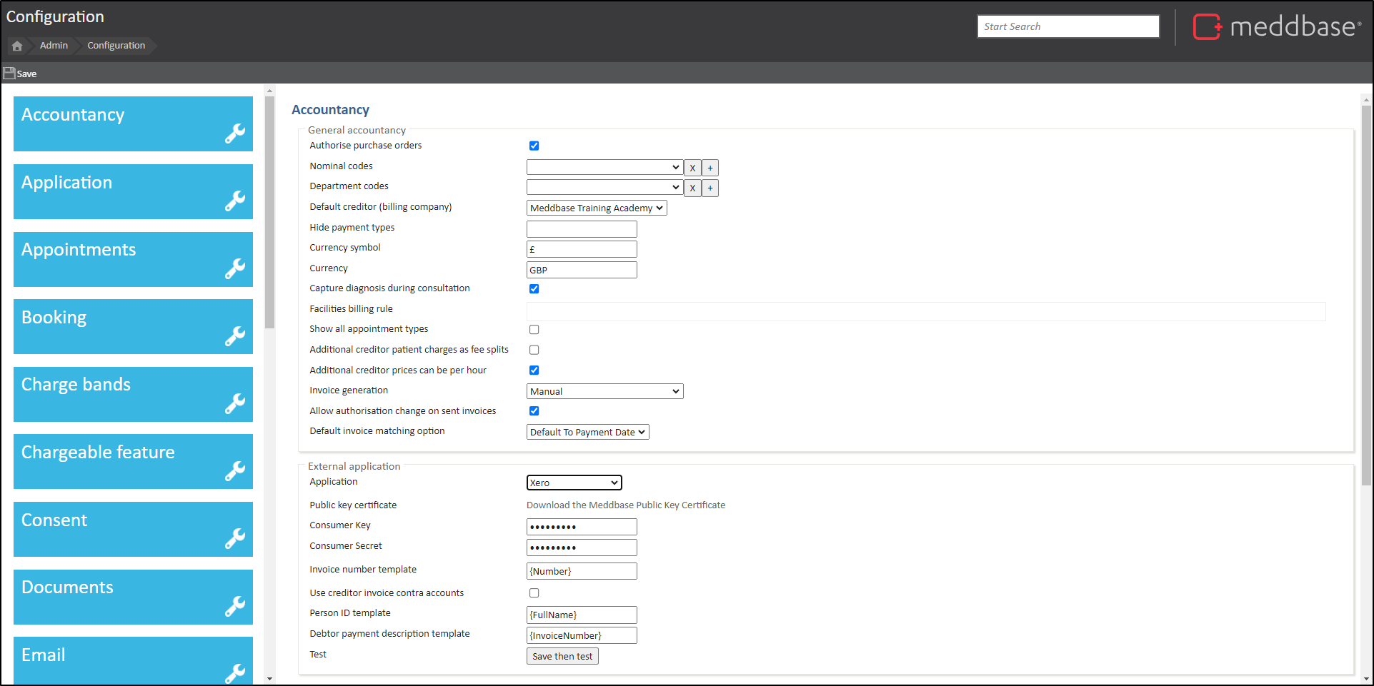 To setup your Meddbase chamber with an integration to your Xero accountancy application, you need to authenticate using OAuth2.0. This article will talk you through how to setup a brand new Xero integration, or to change an existing integration from the old OAuth1.0 authentication method to the new OAuth2.0 method.