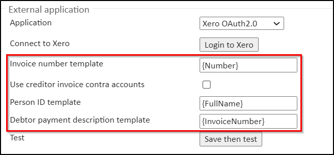 Invoice number template - this setting is specific to Xero used for creating and looking up invoices in Xero.