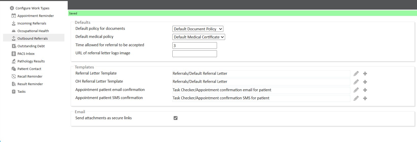 In this area, configure how you expect outbound referrals to behave and provide default templates.