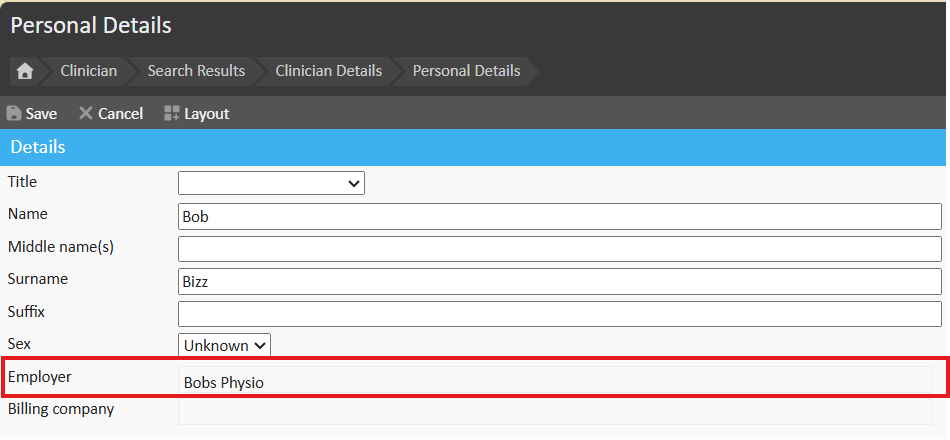 To make referrals quicker in the future, it's beneficial to create a demographic record for the specialist clinician (if known) and link them to the external company by setting their employer.