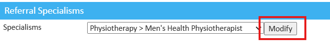 Under Referral Specialisms, click Modify to add the relevant specialisms that the clinician handles.