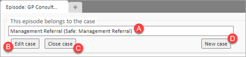 The ‘This episode belongs to the case’ section of the clinical form displays the details of the current case.