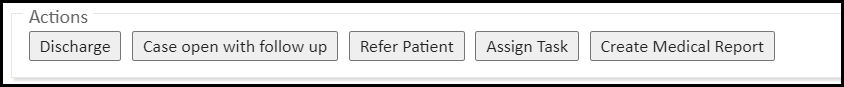 The Actions section on a Clinical Form can be customised according to requirements. Please contact Meddbase Support for more details.