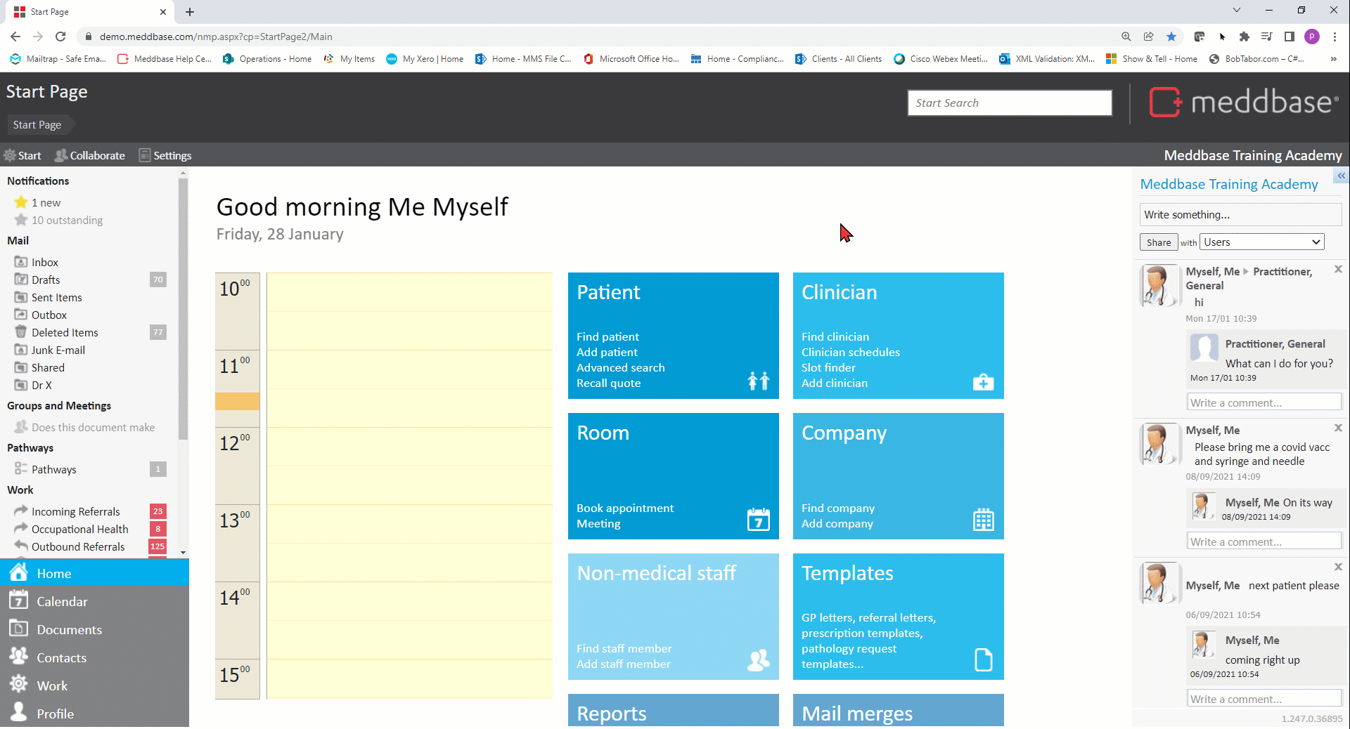 1. From the Start Page click Add patient (either from the Patient tile or system quick links under the Meddbase name in the upper right corner of the Start Page)