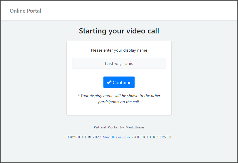 When the patient joins the telemedicine appointment, they will appear in the main part of the screen, with a small panel in the top-right indicating how you appear on screen to them.