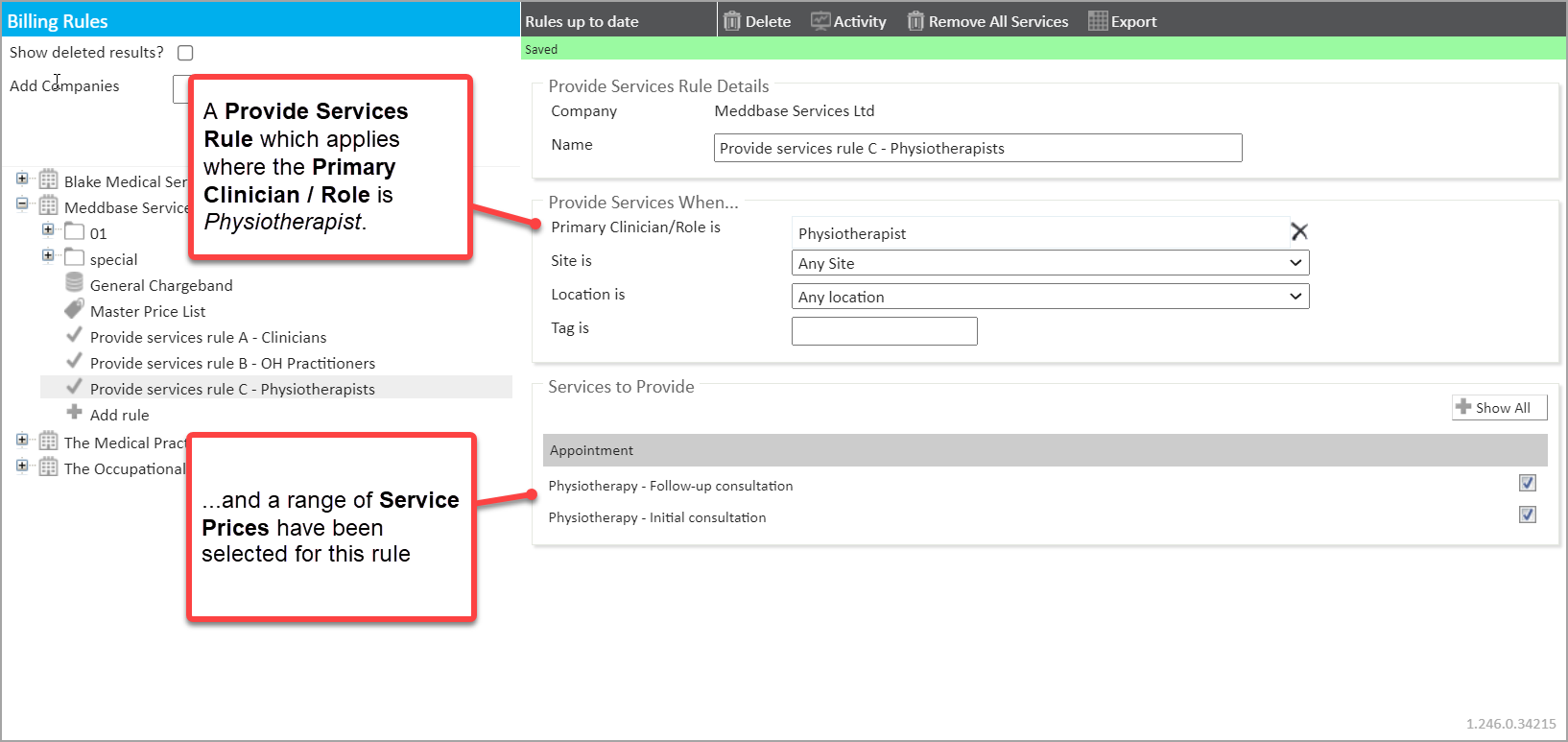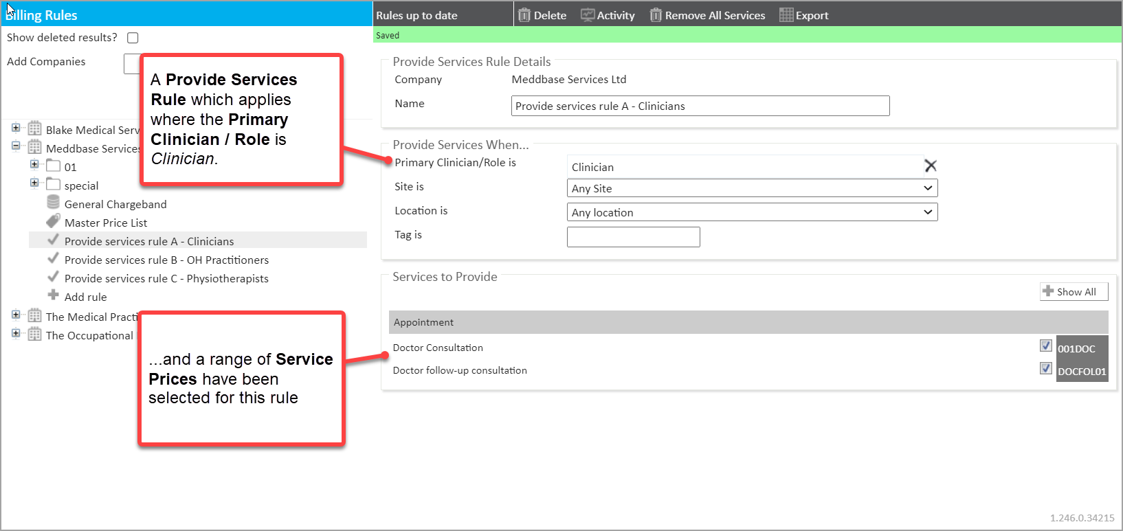 2. A 'Provide services rule A - Clincians' with