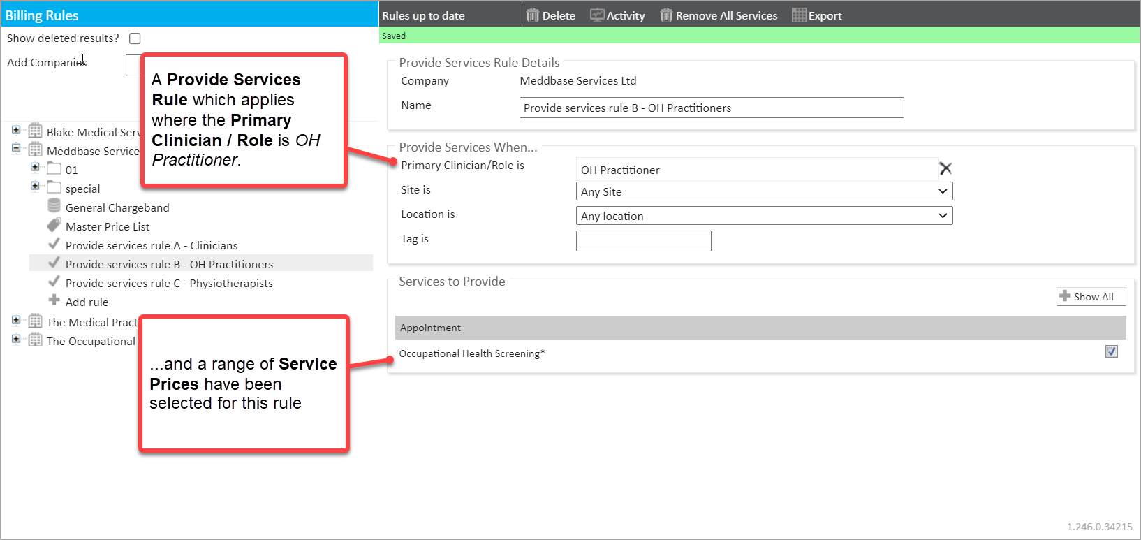 3. A 'Provide services rule B - OH Practitioners' with