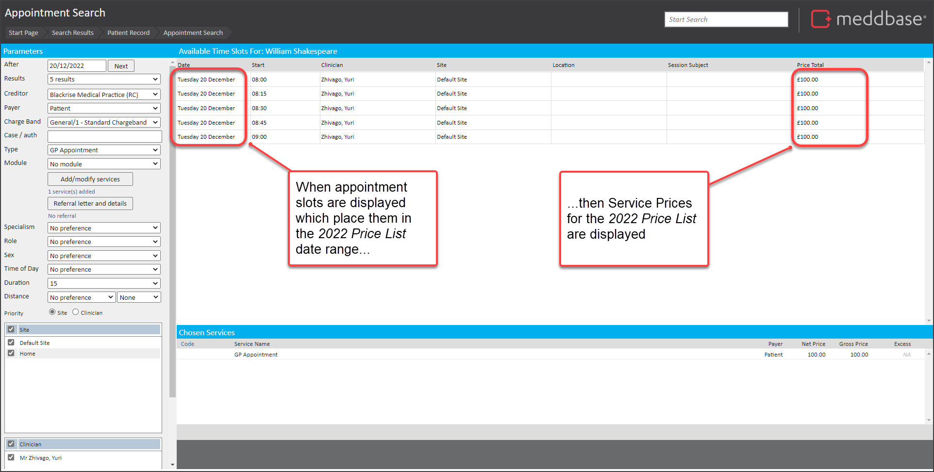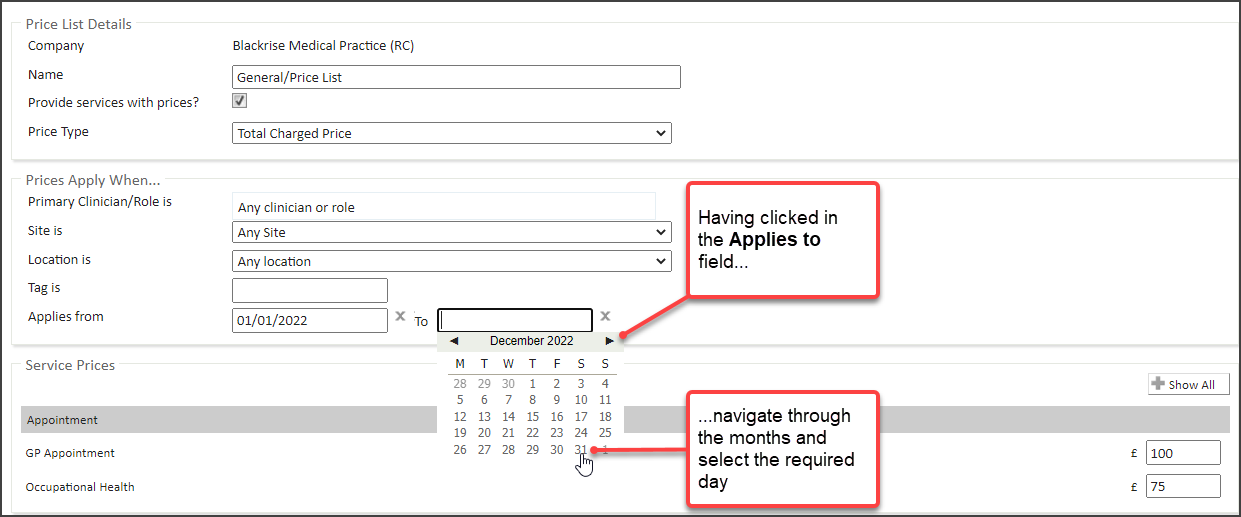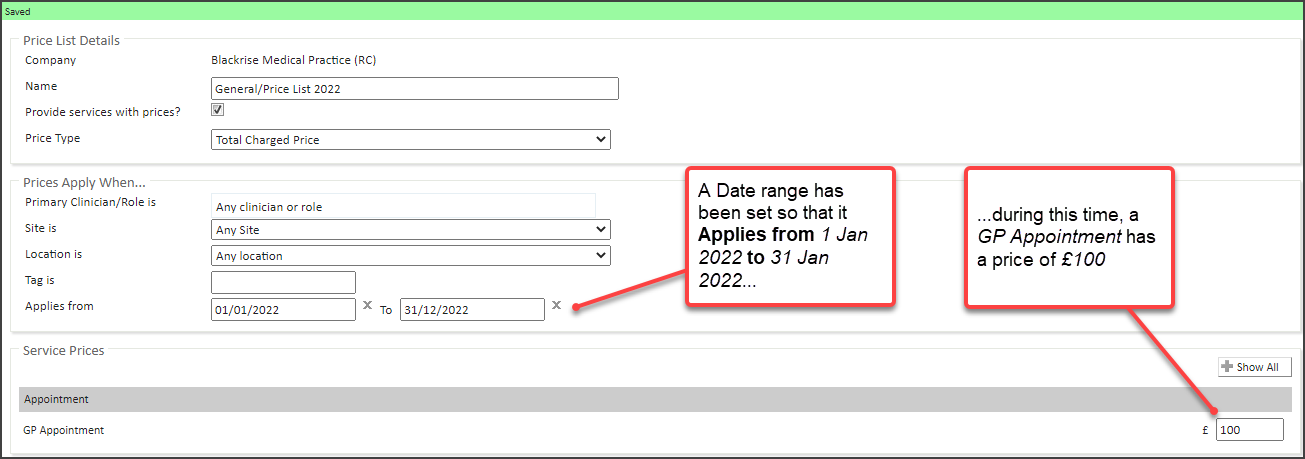 1.4 So the price list Date Ranges dictate that the Service Price is £100