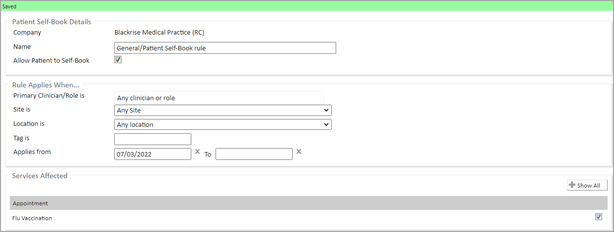2. A Patient Self-Book rule has been created that is valid from 7 March 2022