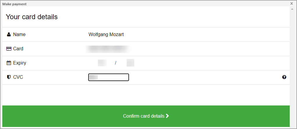On completion, the user is presented with a notification that the payment has been successful and that details have been saved for recurring payments.
