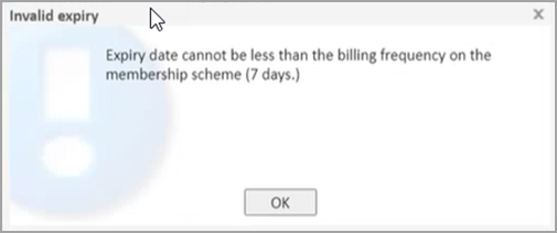When making a payment, there is the ability to review and update the Expiry date. This expiry date should always be later than the next payment date calculated through the billing frequency.