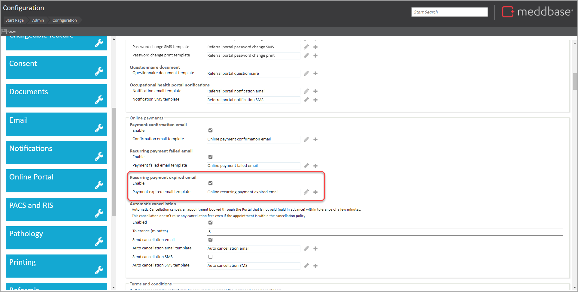In some contexts, using the configured email template noted above, there will be an email notification sent to patients advising that the payment has expired.